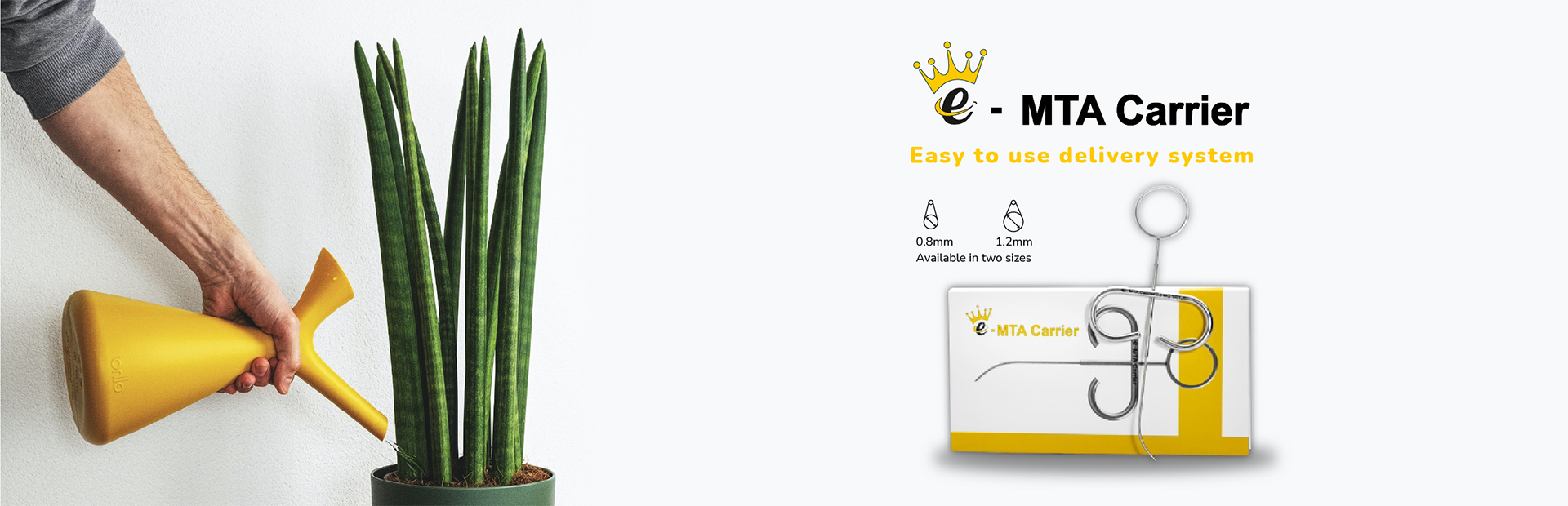 Benefits: e-MTA carrier reduces the amount of MTA waste Eliminates the need to clean the cavity walls Accurate placement at desired site Ease of use.